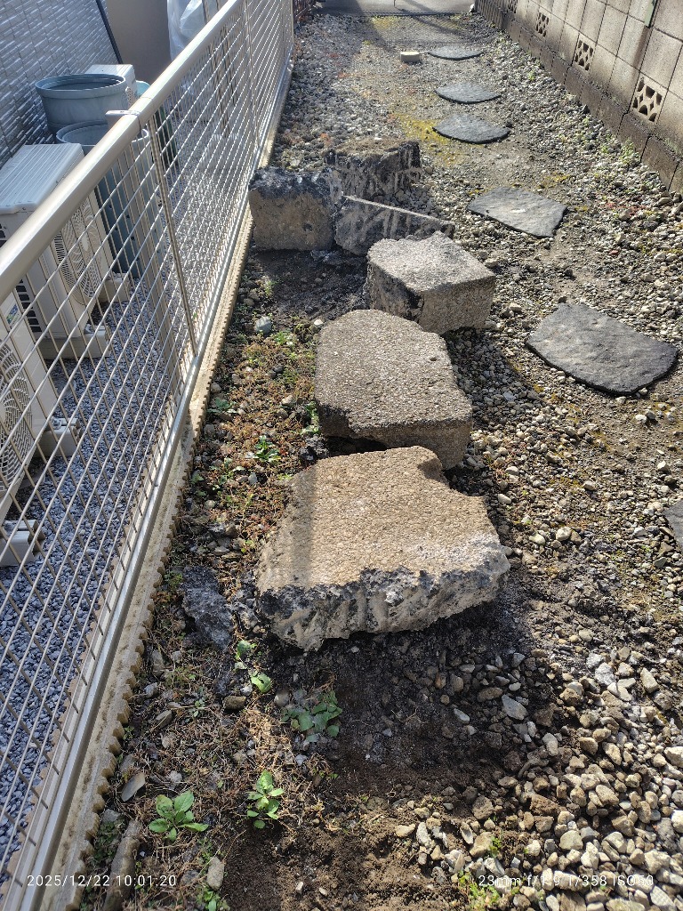 埼玉県川口市末広 今日は、女性からのご依頼で、一戸建玄関前にある 庭石を処分して欲しいとの事で、ユニック車が対応出来ない為、2名で運べるぐらいに解体作業 スタッフ3名 軽トラック2台で処分をさせて貰いました!
