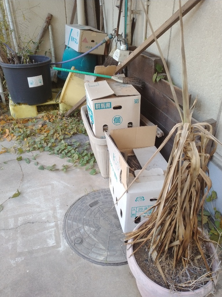 埼玉県川口市南鳩ヶ谷 今日は管理会社さんからのご依頼で、3階建てビルの1階外回りの片づけと屋上の片づけて処分をさせて貰いました!物量は軽トラック1台で、ぎりぎり納まりました。不用品回収やごみ屋敷、遺品整理、便利屋